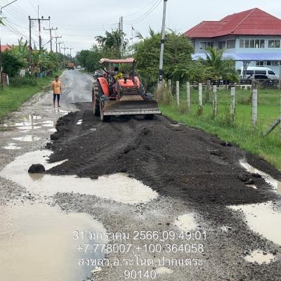 อบจ.สงขลา ได้ให้การสนับสนุนเครื่องจักรกลขนตักวัสดุกากยางมะตอย จากหมวดการทางสทิงพระ ให้กับเทศบาลตำบลปากแตระ