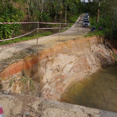 ที่ ม.9 ต.ท่าชะมวง อ.รัตภูมิ บริเวณสะพานข้ามคลองพรุพ้อ เกิดน้ำกัดเซาะคอสะพาน ถนนเสียหายเป็นเหวลึก การจราจรเหลือเพียงช่องทางเดียว ซึ่งขณะนี้องค์การบริหารส่วนจังหวัดสงขลาได้จัดสรรงบประมาณในการแก้ไขปัญหาเป็นงบประมาณทั้งสิ้นจำนวน 3,600,000 บาท ซึ่งขณะนี้ได้เซ็นสัญญากับผู้รับจ้างเพื่อแก้ไขปัญหาดังกล่าวเรียบร้อยแล้ว
