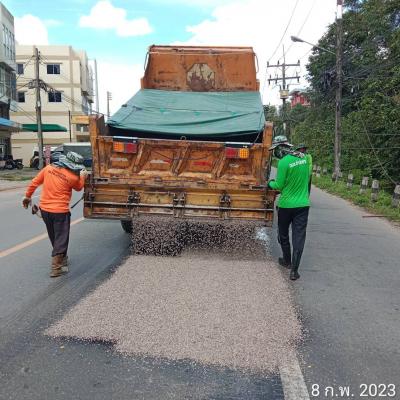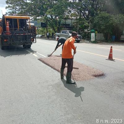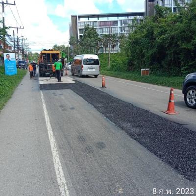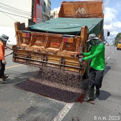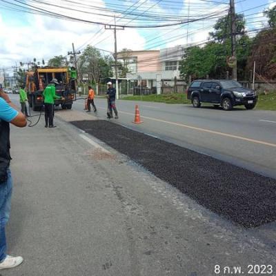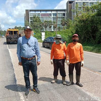 สำนักช่าง อบจ.สงขลา นำเครื่องจักรและวัสดุเข้าพื้นที่ งานซ่อมลาดยาง สายบ้านทุ่งรี ต.คอหงส์ - บ้านเขากลอย ต.ท่าข้าม อ.หาดใหญ่ จ.สงขลา