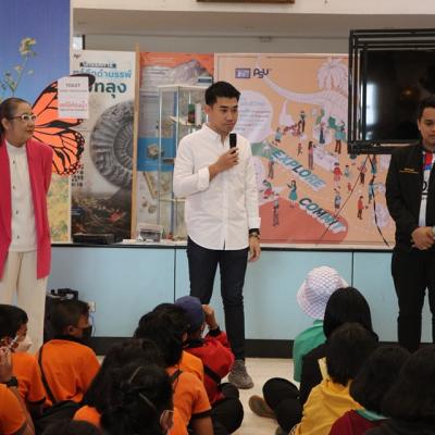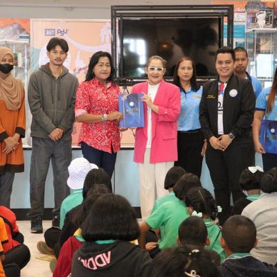 นางสาวปรินดา ปาลาเร่ รองนายกองค์การบริหารส่วนจังหวัดสงขลา พร้อมด้วย นายภูวดล วงษ์โสภณากุล เลขานุการนายกองค์การบริหารส่วนจังหวัดสงขลา และนายธนิศร์ ทองสุข สมาชิกสภาองค์การบริหารส่วนจังหวัดสงขลา เขต 2 อำเภอนาทวี ร่วมต้อนรับคณะครูและนักเรียน โรงเรียนวัดวังไทร หมู่ที่ 4 ตำบล ทับช้าง และโรงเรียนบ้านกะทิง หมู่ที่ 2 ตำบลทับช้าง อำเภอนาทวี จังหวัดสงขลา ในโครงการฝึกอบรม สัมมนาและศึกษาดูงานเพื่อส่งเสริมการมีส่วนร่วมของเด็ก ประจำปี 2566 (กิจกรรมทัศนศึกษาแหล่งเรียนรู้ในอำเภอหาดใหญ่ จังหวัดสงขลา)