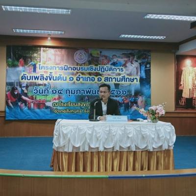 นายสุรสิทธิ์ ศรีอินทร์ รองนายกองค์การบริหารส่วนจังหวัดสงขลา เป็นประธานในพิธีเปิดโครงการฝึกอบรมเชิงปฏิบัติการดับเพลิงขั้นต้น 1 อำเภอ 1 สถานศึกษา พร้อมด้วย นายจตุพร เขียวเจริญ สมาชิกสภา อบจ.สงขลา เขตอำเภอสิงหนคร หัวหน้าส่วนราชการ และเจ้าหน้าที่ อบจ.สงขลา