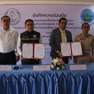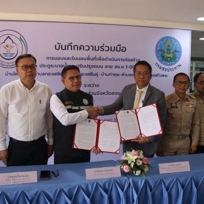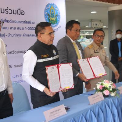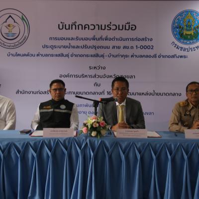 อบจ.สงขลา ร่วมกับ สํานักงานก่อสร้างชลประทานขนาดกลางที่ 16 กองพัฒนาแหล่งนํ้า ขนาดกลาง ทำ MOU รับมอบพื้นที่เพื่อดำเนินการก่อสร้างประตูระบายน้ำและปรับปรุงถนน