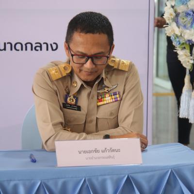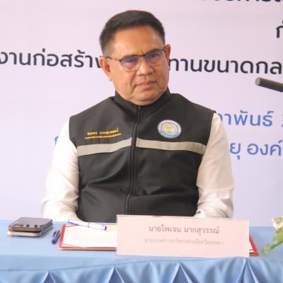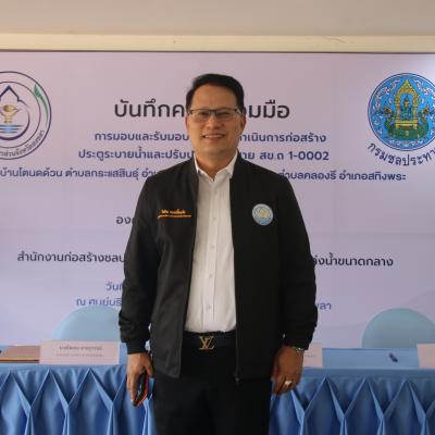 นายไพเจน มากสุวรรณ์ นายกองค์การบริหารส่วนจังหวัดสงขลา (ในฐานะผู้มอบ) ร่วมลงนามในบันทึกความร่วมมือ การมอบพื้นที่เพื่อดำเนินการก่อสร้างประตูระบายน้ำและปรับปรุงถนนสาย สข.ถ. 1-0002 บ้านโตนดด้วน ตำบลกระแสสินธุ - บ้านท่าคุระ ตำบลคลองรี