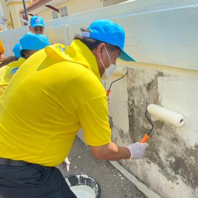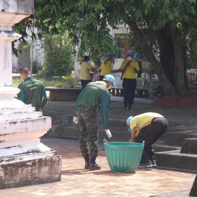 นำผู้เข้าร่วมกิจกรรมทาสีกำแพงวัดจะทิ้งพระและกิจกรรมปรับปรุงภูมิทัศน์ เก็บขยะมูลฝอย ล้างห้องน้ำ ตัดหญ้า บริเวณวัดจะทิ้งพระ เป็นต้น