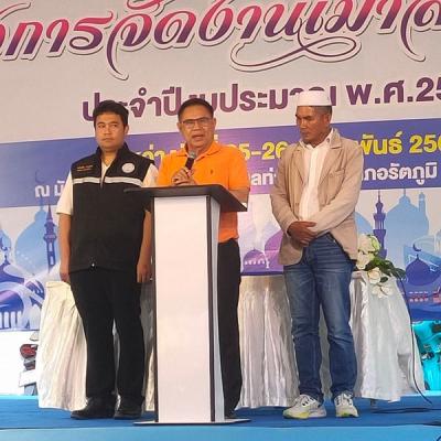 นายไพเจน มากสุวรรณ์ นายกองค์การบริหารส่วนจังหวัดสงขลา //เป็นประธานในพิธีเปิดโครงการจัดงานเมาลิดสัมพันธ์ประจำปี พ.ศ. 2566 พร้อมด้วย ผู้นำทางศาสนาอิสลาม ประชาชนชาวรัตภูมิ และแขกผู้มีเกียรติ เข้าร่วมในพิธีเปิด