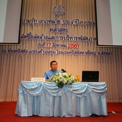 นายก อบจ.สงขลา ประธานเปิดการอบรมให้ความรู้ทางกฏหมาย ประจำปี 2561 หลักสูตรการจัดซื้อจัดจ้าง และการบริหารพัสดุภาครัฐ