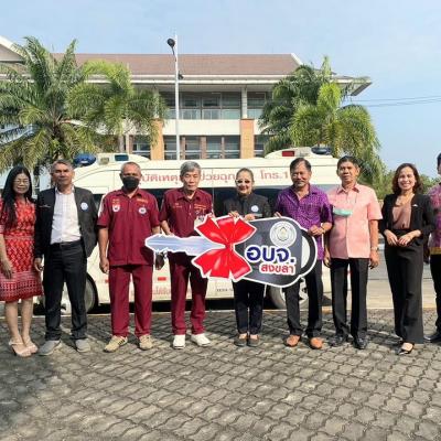 ณ บริเวณหน้าศูนย์รับแจ้งเหตุและสั่งการ อาคารศรีเกียรติพัฒน์ องค์การบริหารส่วนจังหวัดสงขลา