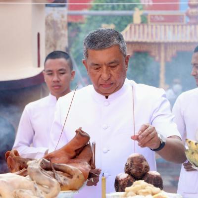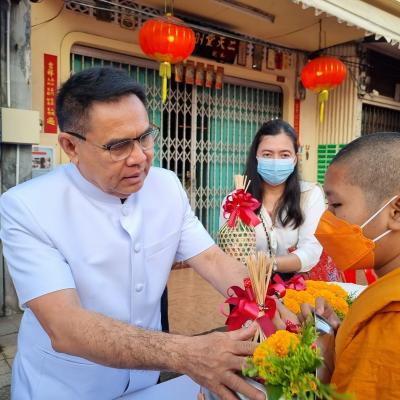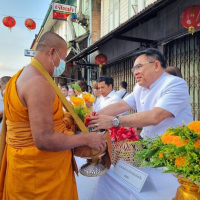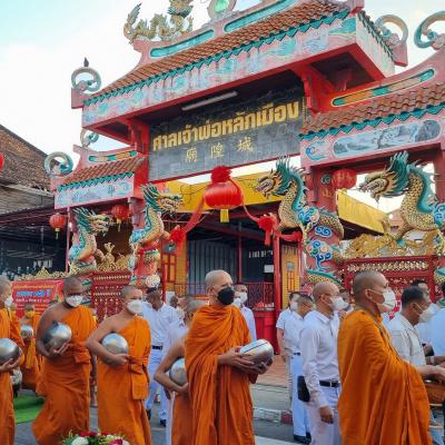 โดยมีนายวรณัฎฐ์ หนูรอต รองผู้ว่าราชการจังหวัดสงขลา เป็นประธานในพิธีทำบุญตักบาตรข้าวสารอาหารแห้งแด่พระภิกษุสงฆ์ จำนวน 39 รูป เพื่ออุทิศส่วนบุญส่วนกุศลแก่บรรพบุรุษผู้ล่วงลับ และความเป็นสิริมงคลเเก่ตนเองและครอบครัว // พิธีสมโภชเสาหลักเมือง และพิธีเจริญพระพุทธมนต์เพื่อความเป็นสิริมงคลเมืองสงขลา
