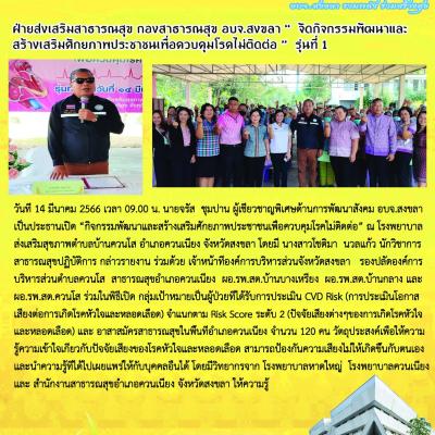 ฝ่ายส่งเสริมสาธารณสุข กองสาธารณสุข อบจ.สงขลา “ จัดกิจกรรมพัฒนาและสร้างเสริมศักยภาพประชาชนเพื่อควบคุมโรคไม่ติดต่อ ” รุ่นที่ 1
