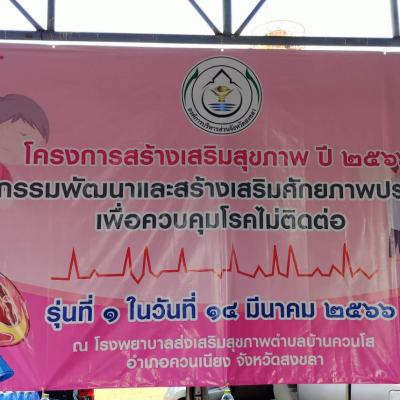 วันที่ 14 มีนาคม 2566 เวลา 09.00 น. นายจรัส ชุมปาน ผู้เชี่ยวชาญพิเศษด้านการพัฒนาสังคม เป็นประธานเปิด “ กิจกรรมพัฒนาและสร้างเสริมศักยภาพประชาชนเพื่อควบคุมโรคไม่ติดต่อ ” ณ โรงพยาบาลส่งเสริมสุขภาพตำบลบ้านควนโส อำเภอควนเนียง จังหวัดสงขลา โดยมี นางสาวโชติมา นวลแก้ว นักวิชาการสาธารณสุขปฏิบัติการ กล่าวรายงาน ร่วมด้วย เจ้าหน้าที่องค์การบริหารส่วนจังหวัดสงขลา รองปลัดองค์การบริหารส่วนตำบลควนโส สาธารณสุขอำเภอควนเนียง ผอ.รพ.สต.บ้านบางเหรียง ผอ.รพ.สต.บ้านกลาง และ ผอ.รพ.สต.ควนโส ร่วมในพิธีเปิด กลุ่มเป้าหมายเป็นผู้ป่วยที่ได้รับการประเมิน CVD Risk (การประเมินโอกาสเสี่ยงต่อการเกิดโรคหัวใจและหลอดเลือด) จำแนกตาม Risk Score ระดับ 2 (ปัจจัยเสี่ยงต่างๆของการเกิดโรคหัวใจและหลอดเลือด) และ อาสาสมัครสาธารณสุขในพื้นที่อำเภอควนเนียง จำนวน 120 คน วัตถุประสงค์เพื่อให้ความรู้ความเข้าใจเกี่ยวกับปัจจัยเสี่ยงของโรคหัวใจและหลอดเลือดสามารถป้องกันความเสี่ยงไม่ให้เกิดขึ้นกับตนเอง และนำความรู้ที่ได้ไปเผยแพร่ให้กับบุคคลอื่นได้ โดยมีวิทยากรจาก โรงพยาบาลหาดใหญ่ โรงพยาบาลควนเนียง และสำนักงานสาธารณสุขอำเภอควนเนียง จังหวัดสงขลา ให้ความรู้