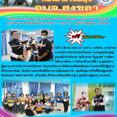 ฝ่ายบริการทางการแพทย์ กองสาธารณสุข อบจ.สงขลา จัดกิจกรรม " สูงวัย หรรษา ปัญญาสุข " ทุกวัน พุธ และ พฤหัสบดี ตั้งแต่เวลา 09.00 – 16.00 น. ณ ศูนย์บริบาลผู้สูงอายุ อบจ.สงขลา