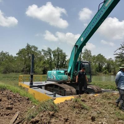 สำนักช่าง อบจ.สงขลา นำเครื่องจักรกล(เรือบรรทุกรถขุดแขนยาว) เข้าดำเนินการลอกวัชพืช เขตห้ามล่าสัตว์ป่าทะเลสาบสงขลา อำเภอสทิงพระ จังหวัดสงขลา