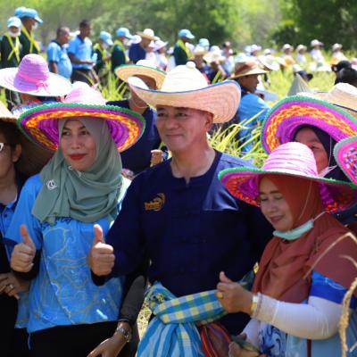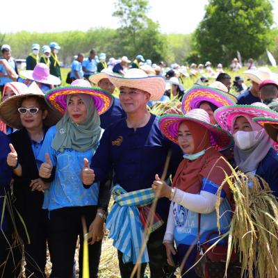 โอกาสนี้ แม่ทัพภาคที่ 4 พร้อมด้วยรองผู้ว่าราชการจังหวัดสงขลา และคณะผู้บริหาร ร่วมกิจกรรมเกี่ยวข้าว บริเวณแปลงนาข้าวศูนย์การเรียนรู้พระอาจารย์ภัตร อริโย เพื่อร่วมกันสืบสานประเพณีวัฒนธรรมดั้งเดิมที่มีคุณค่าของการทำเกษตรกรรมและให้ความสำคัญกับการทำนาพลิกฟื้นพื้นที่ที่รกร้างว่างเปล่ากลับมาใช้ประโยชน์ พร้อมชมนิทรรศการทางการเกษตรของกลุ่มเกษตรกรในพื้นที่ และชมการแสดงชุดสืบสานประเพณีวัฒนธรรมของชุมชนอีกด้วย