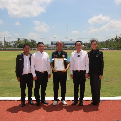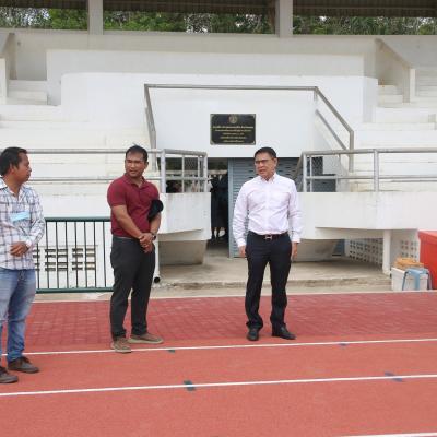 นายไพเจน มากสุวรรณ์ นายกองค์การบริหารส่วนจังหวัดสงขลา พร้อมด้วย นายสุรสิทธิ์ ศรีอินทร์ รองนายกองค์การบริหารส่วนจังหวัดสงขลา // นายนรินทร์ หล้าตัน ผู้อำนวยการสำนักช่าง องค์การบริหารส่วนจังหวัดสงขลา // นายกองค์การบริหารส่วนตำบลคลองหอยโข่ง // นายกองค์การบริหารส่วนตำบลคลองหลา // ผู้นำชุมชนในพื้นที่และเจ้าหน้าที่ ที่เกี่ยวข้อง ลงพื้นที่โครงการก่อสร้างสนามกีฬาลู่ยางสังเคราะห์ สนามกีฬาประจำตำบลคลองหอยโข่ง อำเภอคลองหอยโข่ง จังหวัดสงขลา เพื่อตรวจติดตามความคืบหน้าโครงการฯ มีความเป็นมาตรฐานและได้รับการรับรองจากสมาคมกีฬากรีฑาแห่งประเทศไทย เพื่อผลักดันจังหวัดสงขลาสู่สงขลาเมืองกีฬา Sport City และนโยบาย 1 อำเภอ 1 สนามกีฬา ขององค์การบริหารส่วนจังหวัดสงขลา