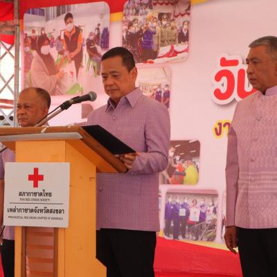 นายวิโรจน์ ทัฬหะวาสน์ ผู้เชี่ยวชาญพิเศษด้านการบริหารงานบุคคล เป็นตัวแทน นายไพเจน มากสุวรรณ์ นายกองค์การบริหารส่วนจังหวัดสงขลา มอบของรางวัลนาวากาชาด เพื่อสนับสนุนการจัดงานประจำปี และงานกาชาดจังหวัดสงขลา ประจำปี 2566 ในวันรวมน้ำใจช่วยกาชาด ประจำปี 2566