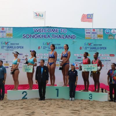 โดยผลการแข่งขันวอลเลย์บอลชายหาด AVC Beach Tour 22nd Samila Open ประเภททีมชาย รางวัลชนะเลิศ ได้แก่ ประเทศจีน รองชนะเลิศอันดับ 1 ได้แก่ ประเทศไทย รางวัลรองชนะเลิศอันดับ 2 ได้แก่ ประเทศอินโดนีเซีย ส่วนผลการแข่งขันวอลเลย์บอลชายหาด ประเภททีมหญิง รางวัลชนะเลิศ ได้แก่ ประเทศจีน รองชนะเลิศอันดับ 1 ได้แก่ ประเทศญี่ปุ่น และรางวัลรองชนะเลิศ อันดับ 2 ได้แก่ ประเทศประเทศวานูอาตู