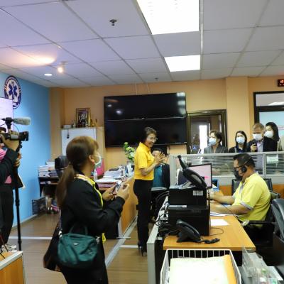 โดยมี นางสาวนาถลดา จิตสุวรรณ หัวหน้าศูนย์รับแจ้งเหตุและสั่งการแพทย์ฉุกเฉิน บรรยายสรุปพร้อมพาชมศูนย์ฯ
