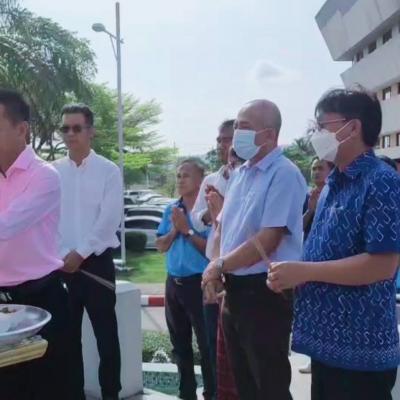 โดยในช่วงเช้า มีพิธีสักการะศาลพระพรหม บริเวณหน้าอาคารสำนักงาน องค์การบริหารส่วนจังหวัดสงขลา และร่วมรับประทานอาหาร หลังเสร็จพิธีทางศาสนาแล้ว