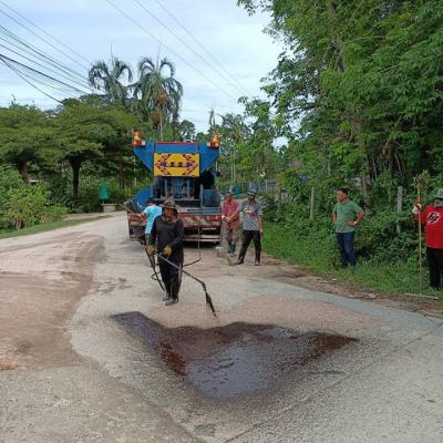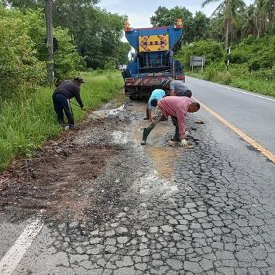 สำนักช่าง อบจ.สงขลา นำเครื่องจักรกลออกปฏิบัติงานซ่อมถนนสายบ้านดอนขี้เหล็ก - บ้านนาป๋อง ตำบลพะวง อำเภอเมืองสงขลา จังหวัดสงขลา