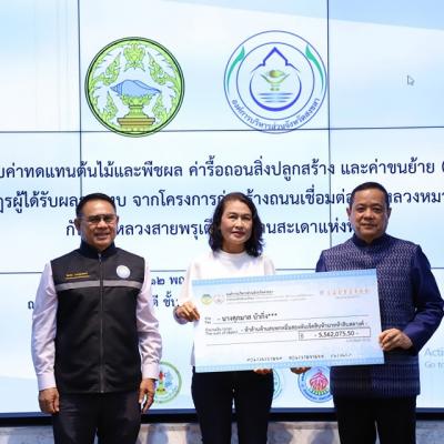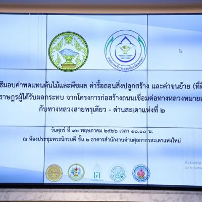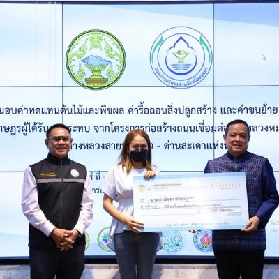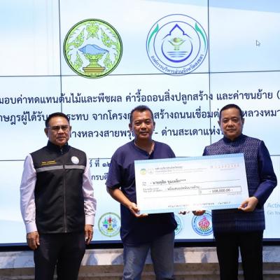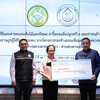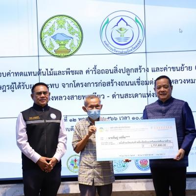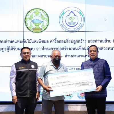 ในโอกาสนี้ ประธานในพิธีฯ ได้มอบเงินค่าทดแทนต้นไม้และพืชผล ค่ารื้อถอนสิ่งปลูกสร้าง และค่าขนย้าย (ที่ดิน) ให้แก่ราษฎรผู้ได้รับผลกระทบ จำนวน 6 ราย