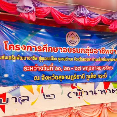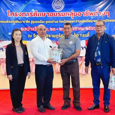 การศึกษาอบรมกลุ่มอาชีพต่างๆ (กิจกรรมส่งเสริมพัฒนาอาชีพ สู่ชุมชนเมือง ชุมชนตำบลจังหวัดสงขลา ตามหลักปรัชญาของเศรษฐกิจพอเพียง) ประจำปี 2566