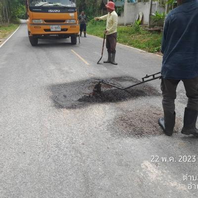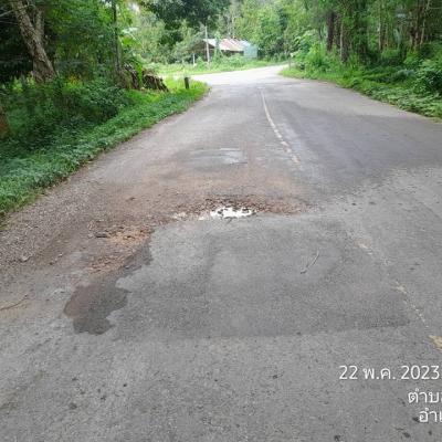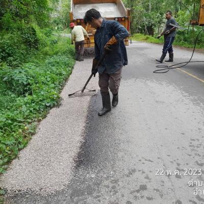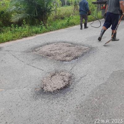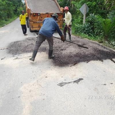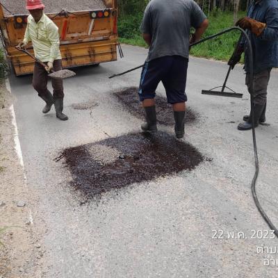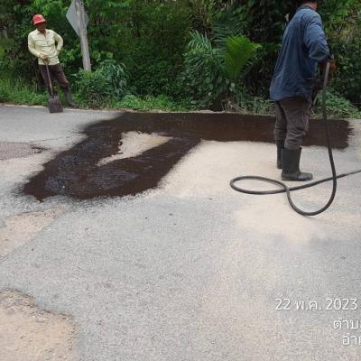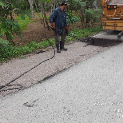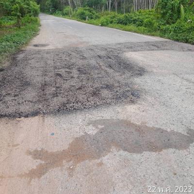 สำนักช่าง อบจ.สงขลา นำเครื่องจักรและวัสดุลงพื้นที่งานซ่อมลาดยาง ถนนสายหลัก บ้านหนำคอก ตำบลท่าโพธิ์ อำเภอสะเดา จังหวัดสงขลา