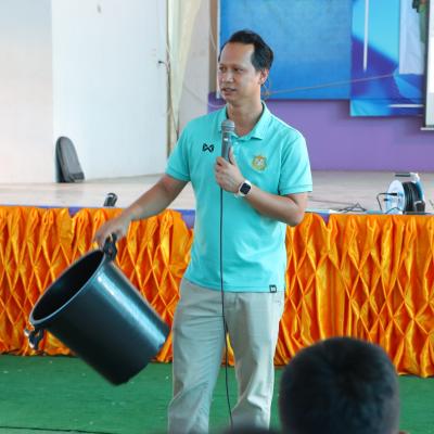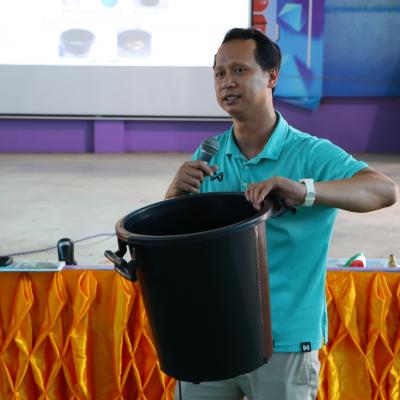 นายนิธิ สุดวิไล ตำแหน่งนักวิชาการสิ่งแวดล้อมปฏิบัติการ สำนักงานทรัพยากรธรรมชาติและสิ่งแวดล้อมจังหวัดสงขลา // บรรยายให้ความรู้ เรื่อง การคัดแยกขยะมูลฝอย ตามหลัก 3 Rs และการจัดทำถังขยะเปียกภายในครัวเรือนหรือภายในองค์กร พร้อมฝึกปฏิบัติและสาธิตวิธีการจัดทำถังขยะเปียกครัวเรือน