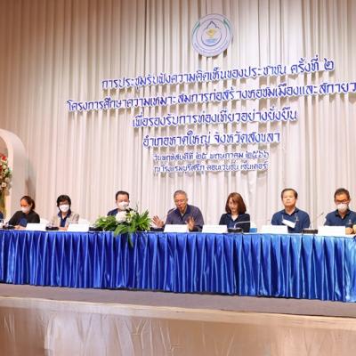 อย่างไรก็ตาม ภายหลังจากการประชุมรับฟังความคิดเห็นของประชาชนครั้งที่ 1 ได้มีการศึกษารวบรวมข้อมูล และวิเคราะห์พื้นที่ รวมถึงนำความเห็นจากผู้เข้าร่วมประชุมมากำหนดแนวคิดในการออกแบบให้มีความโดดเด่น และสอดคล้องกับบริบทของคนในพื้นที่จังหวัดสงขลาในการดำเนินโครงการครั้งนี้ เป็นการดำเนินงานภายใต้แนวคิดการพัฒนาการท่องเที่ยวอย่างยั่งยืน จำเป็นอย่างยิ่งที่จะต้องให้ความสำคัญของการดำเนินการในรูปแบบการมีส่วนร่วมจากทุกภาคส่วน ทั้งจากประชาชนในพื้นที่ หน่วยงานที่เกี่ยวข้อง ทั้งภาครัฐและภาคเอกชน และภาคีเครือข่าย โดยจะต้องมีการศึกษาความเป็นไปได้ของโครงการ การวิเคราะห์รูปแบบและแนวความคิด การศึกษาวิเคราะห์ผลกระทบด้านสิ่งแวดล้อม รวมถึงการวิเคราะห์ศักยภาพพื้นที่ เพื่อกำหนดตำแหน่งที่ตั้งให้มีความเหมาะสมในการทำโครงการ ตลอดจนการใช้พื้นที่โครงการที่เชื่อมต่อกับพื้นที่โดยรอบ เพื่อให้เกิดประโยชน์สูงสุด และสอดคล้องกับทิศทางการพัฒนาประเทศ ตามนโยบายของรัฐบาลในการพัฒนาการท่องเที่ยวอย่างยั่งยืน