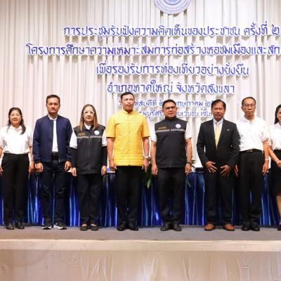 ด้าน นายพิพัฒน์พงศ์ แก้วสุวรรณ หัวหน้าฝ่ายปฏิบัติการผังเมือง กล่าวว่า องค์การบริหารส่วนจังหวัดสงขลา ได้ดำเนินการจ้างบริษัท เอ-เซเว่น คอร์ปอเรชั่น จำกัด ให้เศึกษาความเหมาะสมของโครงการ เนื่องจากการก่อสร้างหอชมเมืองและสกายวอล์ค เป็นโครงการขนาดใหญ่ที่มีความสลับซับซ้อน ทั้งในด้านการออกแบบ และอาจส่งผลกระทบต่อประชาชนด้านสังคม เศรษฐกิจ และสิ่งแวดล้อม โดยมีวัตถุประสงค์เพื่อศึกษาออกแบบแนวคิดหอชมเมือง และสกายวอล์คในพื้นที่อำเภอหาดใหญ่ จังหวัดสงขลา พร้อมทั้งศึกษาออกแบบด้านสถาปัตยกรรม และด้านโครงสร้างพื้นฐานให้สอดคล้องกับพื้นที่โครงการ เพื่อรองรับการท่องเที่ยวอย่างยั่งยืน พร้อมศึกษาวิเคราะห์ผลกระทบด้านสิ่งแวดล้อมภายในพื้นที่โครงการ และเมื่อวันที่ 19 เมษายน 2565 ได้มีการจัดประชุมรับฟังความคิดเห็นของประชาชน ณ โรงแรมคริสตัล อำเภอหาดใหญ่ จังหวัดสงขลา เพื่อให้ประชาชนและหน่วยงานที่เกี่ยวข้อง ได้รับทราบความเป็นมา วัตถุประสงค์ และแผนดำเนินโครงการฯ โดยมีผู้เข้าร่วมประชุมทั้งสิ้น 310 คน โดยที่ประชุมได้ให้ข้อคิดเห็น ข้อเสนอแนะที่เป็นประโยชน์ต่อการศึกษา ซึ่งคณะที่ปรึกษาได้นำเสนอข้อคิดเห็นดังกล่าว มาประกอบการศึกษาโครงการให้เหมาะสมและเกิดประโยชน์สูงสุด และสำหรับการประชุมรับฟังความคิดเห็นของประชาชน และหน่วยงานที่เกี่ยวข้องในครั้งนี้ เป็นการนำเสนอสรุปผลการวิเคราะห์สถานที่ตั้งที่เหมาะสมของโครงการ รวมไปถึงแนวคิดการออกแบบ การวิเคราะห์ผลกระทบด้านสิ่งแวดล้อม และการวิเคราะห์ความเป็นไปได้ ทั้งในด้านเศรษฐศาสตร์และการเงิน และบริษัทที่ปรึกษาจะนำผลของการประชุมในวันนี้ ไปประกอบการดำเนินงานศึกษาโครงการ เพื่อให้โครงการสำเร็จลุล่วงตามวัตถุประสงค์ต่อไป