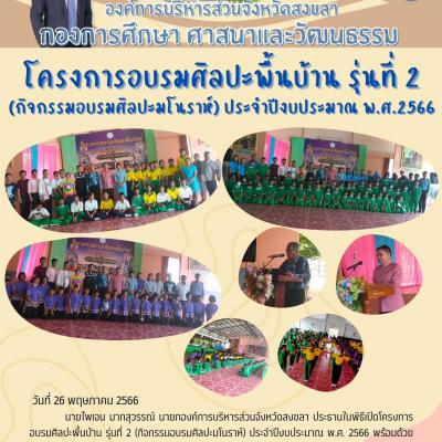 พิธีเปิดโครงการอบรมศิลปะพื้นบ้าน รุ่นที่ 2 (กิจกรรมอบรมศิลปะมโนราห์) ประจำปีงบประมาณ พ.ศ. 2566