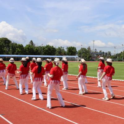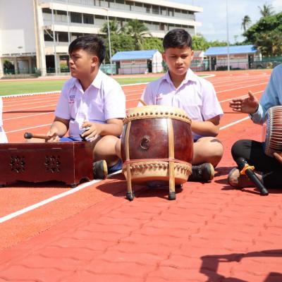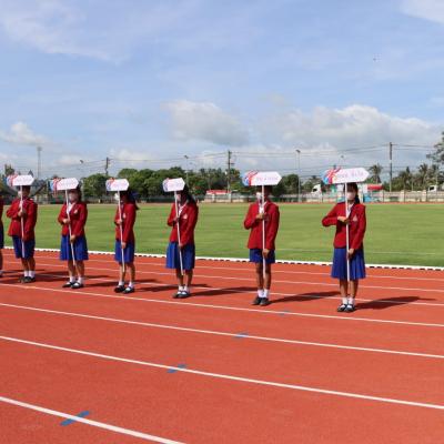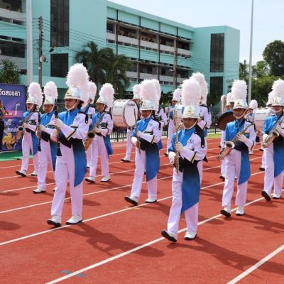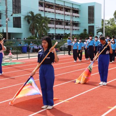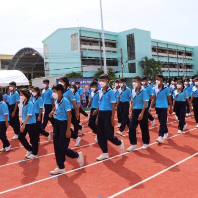 นักเรียนเเละคณะกรรมการจัดการเเข่งขัน เข้าร่วมในพิธีเปิด