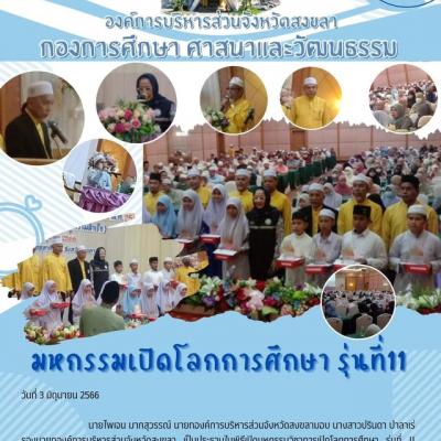 เป็นประธานในพิธีเปิดมหกรรมวิชาการเปิดโลกการศึกษา รุ่นที่ 11 (ร่วมคิดร่วมทำนำสู่ความสำเร็จ) ร่วมกับ นายกสมาคมตาดีกาจังหวัดสงขลา