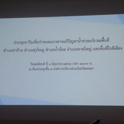 การประชุมหารือเพื่อกำหนดแนวทางแก้ปัญหาน้ำท่วมบริเวณพื้นที่ตำบลท่าข้าม ตำบลทุ่งใหญ่ ตำบลน้ำน้อย อำเภอหาดใหญ่ และพื้นที่ใกล้เคียง