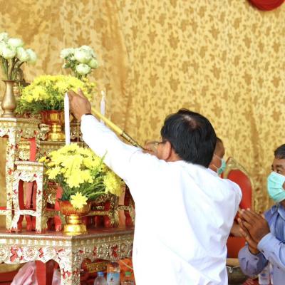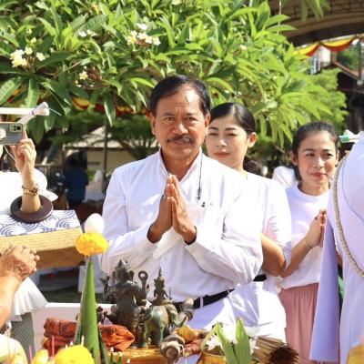 โดยมี นายอรุณ บุญรัตน์ ผู้ใหญ่บ้าน หมู่ที่ 9 ตำบลโคกม่วง กล่าวรายงาน ในนามคณะกรรมการวัดโคกม่วง และพี่น้องประชาชนตำบลโคกม่วง