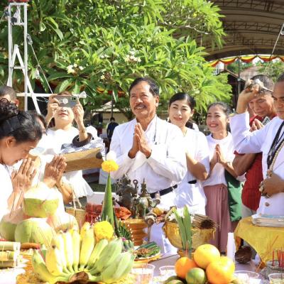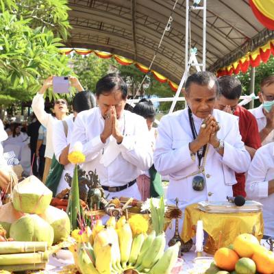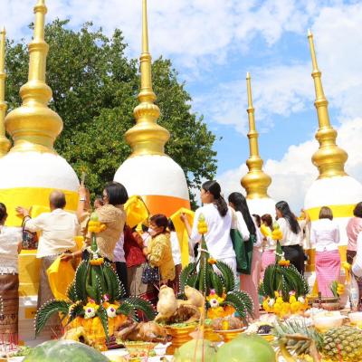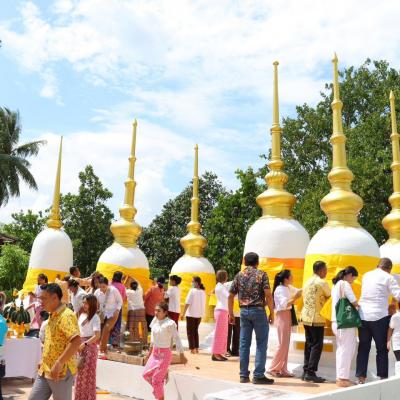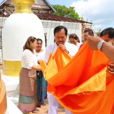 สักการะบูชาห่มผ้าเจดีย์ 5 ยอด วัดโคกม่วง ตำบลคลองหอยโข่ง