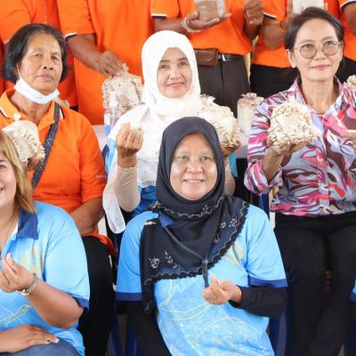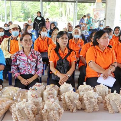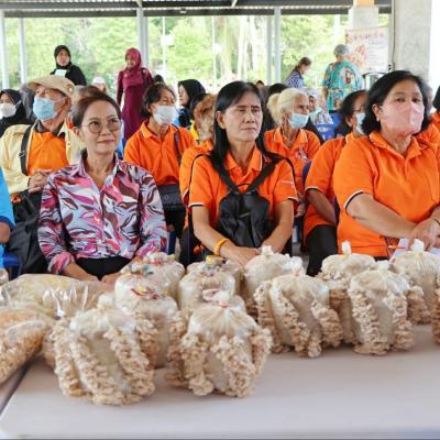 อบจ.สงขลา นำนักเรียนสูงวัย “ ดูงานสุขสันต์ ที่วิสาหกิจปัญญพฤกษ์ พาปลูกผักยกแคร่ & ชมการเพาะเลี้ยงเห็ดแครง ของดีจากวิสาหกิจชุมชนท่าข้าม ”
