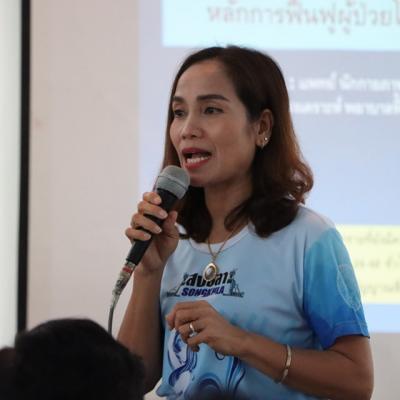 โดยมี พญ.จิรวรรณ ชูทิพย์ แพทย์เวชศาสตร์ฟื้นฟู โรงพยาบาลสงขลา และนางสาวเกสรีพรรณ์ สานุกูล นักกิจกรรมบำบัด โรงพยาบาลสงขลาให้เกียรติมาเป็นวิทยากรในการอบรม