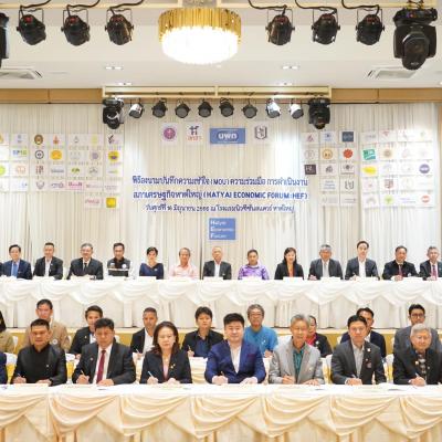 อบจ.สงขลา ร่วมลงนาม สภาเศรษฐกิจหาดใหญ่ (HEF) ด้วยการยึดมั่นประโยชน์ของเมืองหาดใหญ่เป็นหลัก รับฟังความคิดเห็นที่แตกต่างกัน และการแสดงออกถึงการมีส่วนร่วมในทุกกิจกรรมของสภาเศรษฐกิจหาดใหญ่ หวังให้เมืองหาดใหญ่ กลับมาเป็นศูนย์กลางความเจริญของภาคใต้