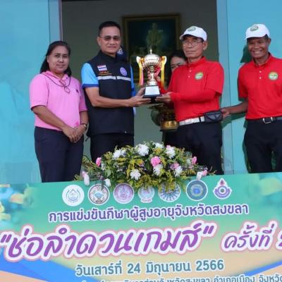นายสุรสิทธิ์ ศรีอินทร์ รองนายกองค์การบริหารส่วนจังหวัดสงขลา เข้าร่วมในการแข่งขันกีฬาผู้สูงอายุจังหวัดสงขลา "ช่อลำดวนเกมส์” (ครั้งที่ 23) พร้อมกล่าวนโยบายการสนับสนุนงานผู้สูงอายุจังหวัดสงขลา