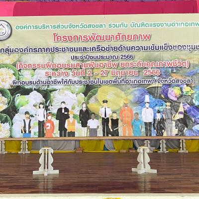 พิธีปิดโครงการส่งเสริมพัฒนา ศักยภาพกลุ่มองค์กรภาคประชาชนและเครือข่ายด้านความเข้มแข็งของชุมชนประจำปีงบประมาณ 2566 กิจกรรมฝึกอบรมสานฝันอาชีพ ยกระดับคุณภาพชีวิต