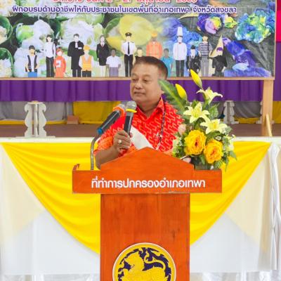โดยมีนายบุญภพ มะเดื่อ ปลัดอำเภอหัวหน้ากลุ่มงานบริหารงานปกครอง กล่าวต้อนรับพร้อมมอบประกาศนียบัตร สำหรับผู้ผ่านการอบรม นางณัฐฐาพร ไชยโยธา ปลัดอำเภอ เจ้าพนักงานปกครองชำนาญกาน ร่วมในพิธี และ นางสาวภัคชุดา วรรณเพ็ชชา นักพัฒนาชุมชนชำนาญการ ฝ่ายพัฒนาชุมชน องค์การบริหารส่วนจังหวัดสงขลา กล่าวรายงาน
