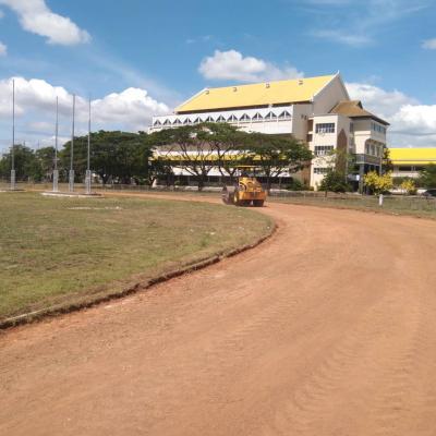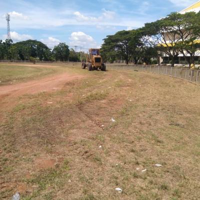สำนักช่าง องค์การบริหารส่วนจังหวัดสงขลา สั่งการให้เจ้าหน้าที่นำรถเกรดปรับพื้นลู่วิ่งสนามกีฬา รร.นวมินทราชูทิศทักษิณ จังหวัดสงขลา ที่มีสภาพหญ้าและวัชพืชในพื้นที่ลู่วิ่ง เพื่อเตรียมความพร้อมสนามในการจัดกิจกรรมการแข่งขันกีฬา และลดความเสี่ยงการบาดเจ็บของนักกีฬาในระหว่างแข่งขันกีฬาได้