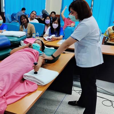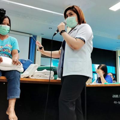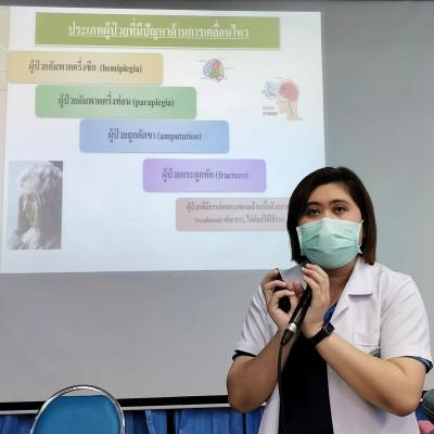 ในวันนี้ช่วงเช้าเป็นการบรรยายหัวข้อเรื่อง กายภาพบำบัดในผู้ป่วยอัมพาตครึ่งซีก โดย นางสาว ศิริภาวดี นวลใย นักกายภาพบำบัด โรงพยาบาลสทิงพระ