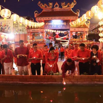 พร้อมด้วย หัวหน้าส่วนราชการ // นายวันชัย ปริญญาศิริ นายกเทศมนตรีนครสงขลา // นายไพโรจน์ สุวรรณจินดา นายกสมาคมฮกเกี้ยนสงขลา // ประชาชนในพื้นที่ และบุคลากรองค์การบริหารส่วนจังหวัดสงขลาเข้าร่วมในพิธีฯ