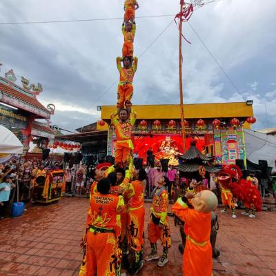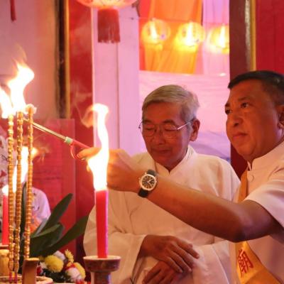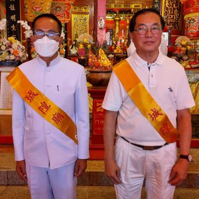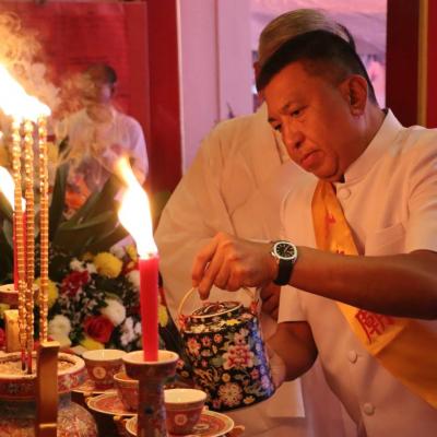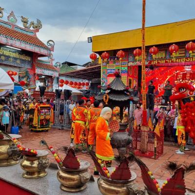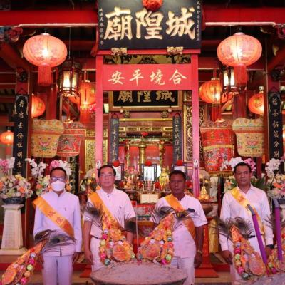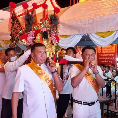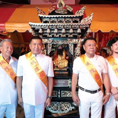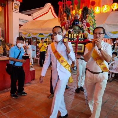 นายวรณัฎฐ์ หนูรอต รองผู้ว่าราชการจังหวัดสงขลา พร้อมด้วย นายวันชัย ปริญญาศิริ นายกเทศมนตรีนครสงขลา นายไพโรจน์ สุวรรณจินดา นายกสมาคมฮกเกี้ยนสงขลา และ นายเชิดเกียรติ เมธีลักษณ์ ที่ปรึกษานายก อบจ.สงขลา ร่วมประกอบพิธีอัญเชิญองค์พระประทับเกี้ยวในงาน “สมโภชศาลเจ้าพ่อหลักเมืองสงขลา” ครบรอบ 181 ปี ท่ามกลางบรรยากาศพี่น้องชาวไทยเชื้อสายจีนและผู้มีจิตศรัทธาเข้าร่วมพิธีเป็นจำนวนมาก