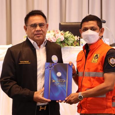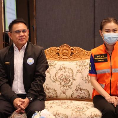 พร้อมด้วย นางสาวสุนารี บุญชุบ หัวหน้าสำนักงานป้องกันและบรรเทาสาธารณภัย จังหวัดสงขลา และแขกผู้มีเกียรติ เข้าร่วมในพิธีเปิด