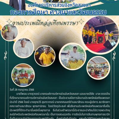 นายไพเจน มากสุวรรณ์ นายกองค์การบริหารส่วนจังหวัดสงขลา มอบนายปรีชัย มาละวรรณโณ ที่ปรึกษานายกองค์การบริหารส่วนจังหวัดสงขลา เป็นประธานเปิดการจัดงานประเพณีหล่อเทียนพรรษา ประจำปี 2566