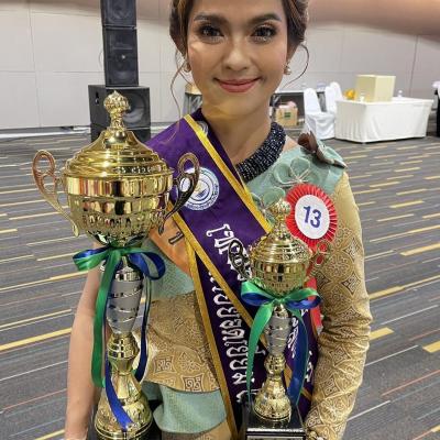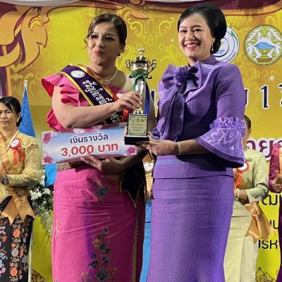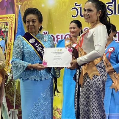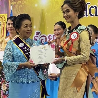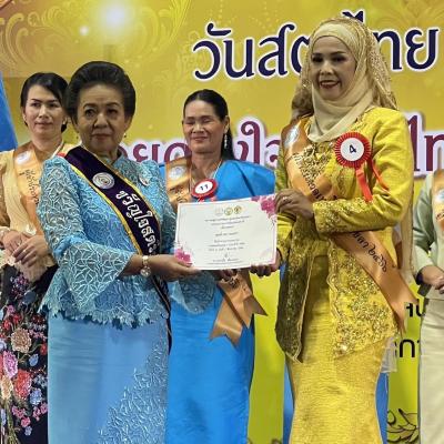 รางวัลชุดอัตลักษณ์ท้องถิ่นดีเด่น ได้เเก่ หมายเลข13 คุณพงศ์เพ็ญ จูงศิริ ตัวเเทนสตรีจากอำเภอสะเดา