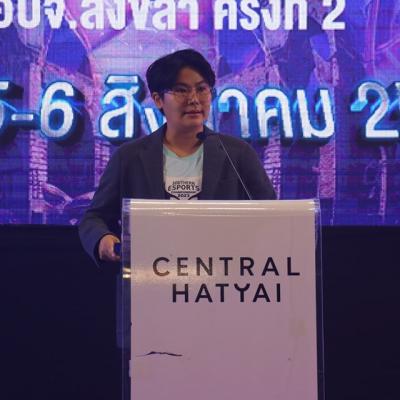 โดยมี นางสาวจิตจัณ สาระวิโรจน์ ประธานชมรมกีฬาอีสปอร์ตจังหวัดสงขลา //กล่าวรายงาน