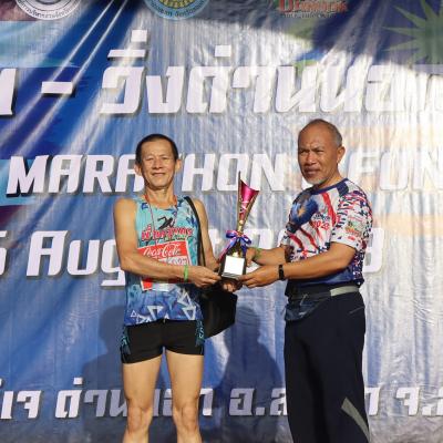 นายสาธิต ลิ๋ววัฒนะโชตนันท์ นายกเทศมนตรีตำบลสำนักขาม กล่าวรายงาน ในพิธีเปิดโครงการส่งเสริมการท่องเที่ยว "เดิน - วิ่งด่านนอก" พร้อมด้วย คณะกรรมการจัดการแข่งขัน